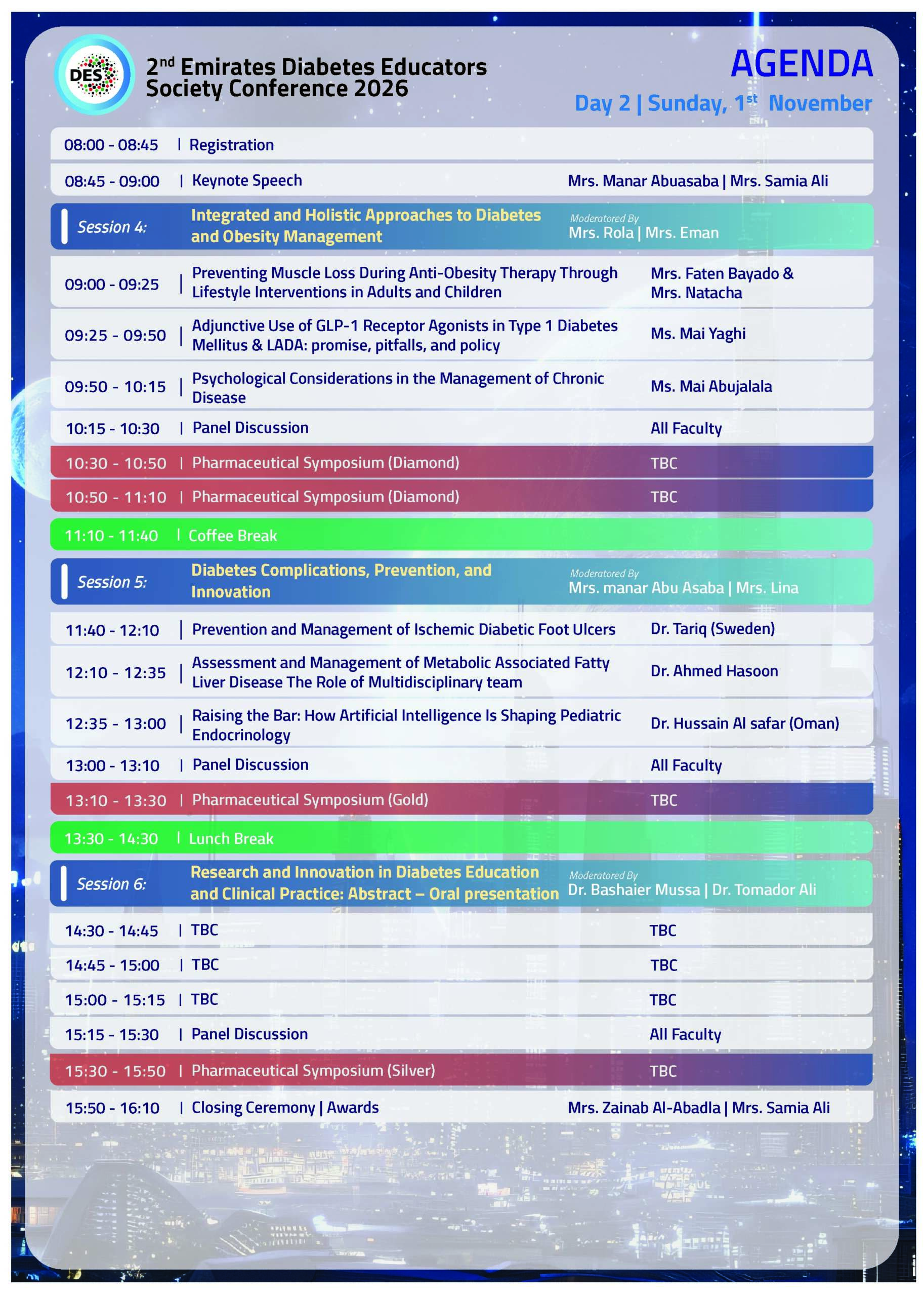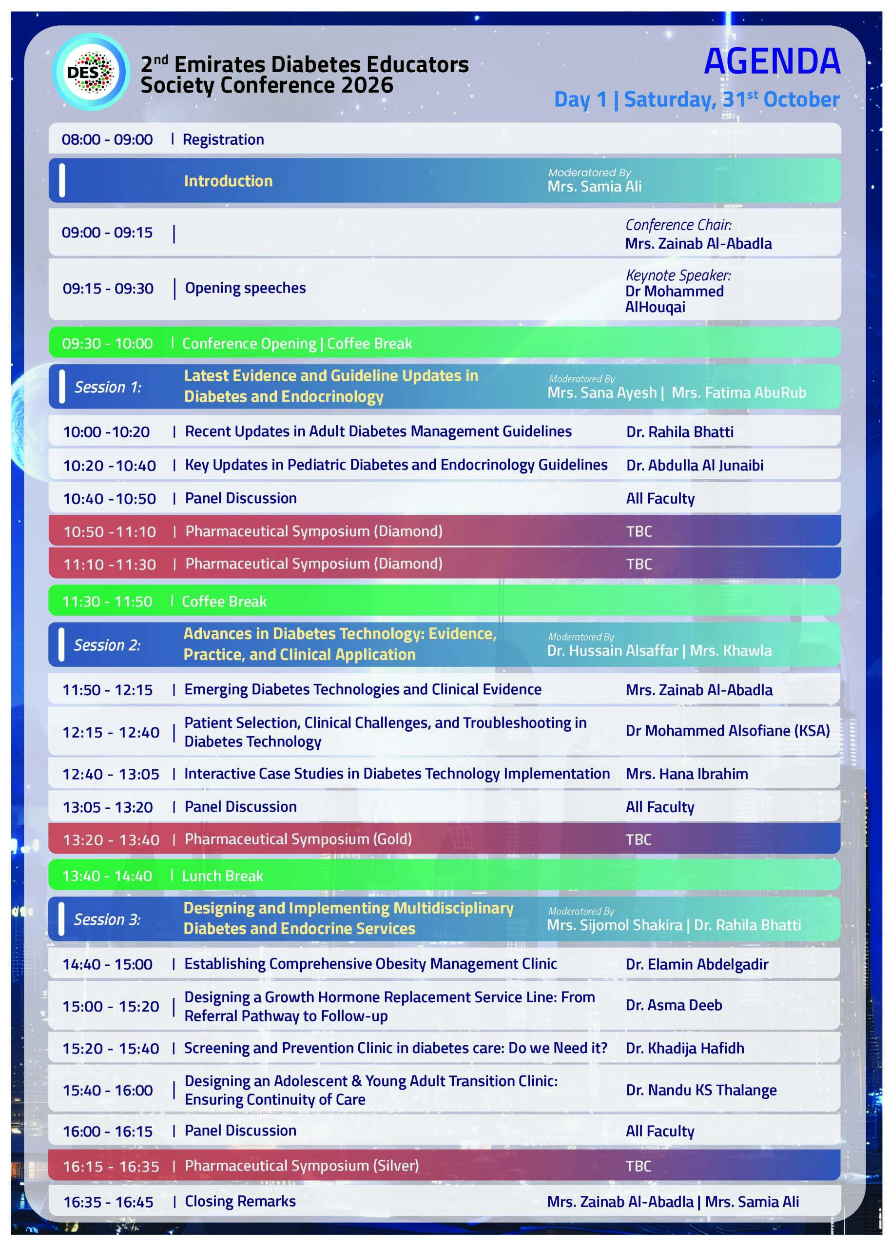 It is with great pleasure that I invite you to the 2nd Emirates Diabetes Educators Society Conference 2026 (DES2026), taking place from 31 October to 1 November 2026 in Dubai, UAE.